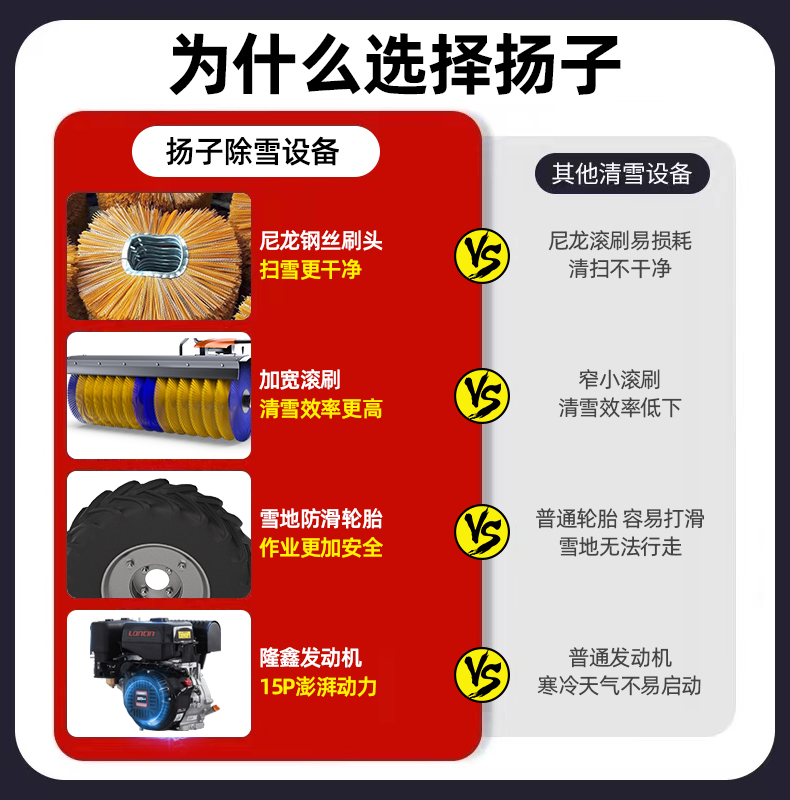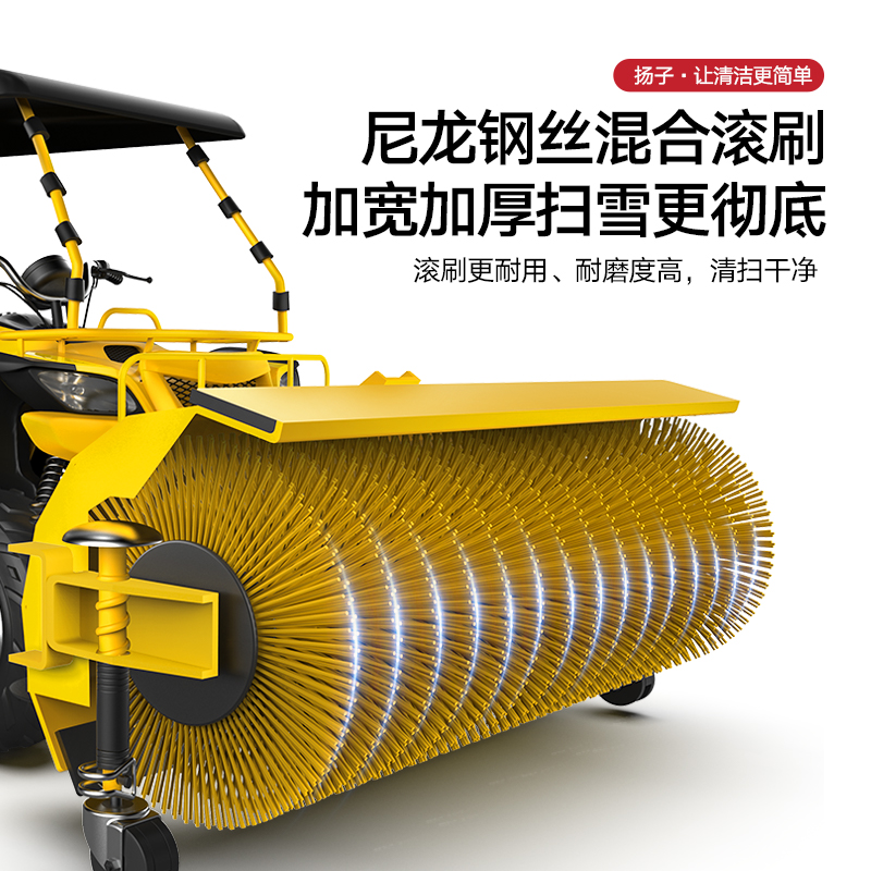 揚子YZ-SXJ003駕駛式掃雪機加寬加厚掃雪更徹底,耐磨尼龍鋼絲混合滾刷持久更耐用,可調節檔位操作更簡單