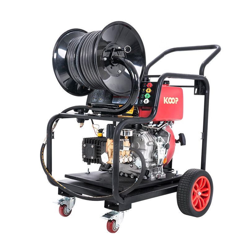 一臺揚(yáng)子YZ-D30-30柴油款管道疏通機(jī),動力強(qiáng)水流大暢通無阻拐彎無壓力。
