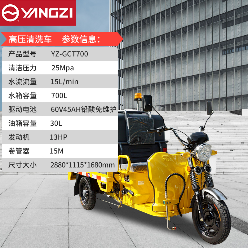 揚子YZ-GCT700高壓清洗車適合各種場所,700L大容量水箱持續作業