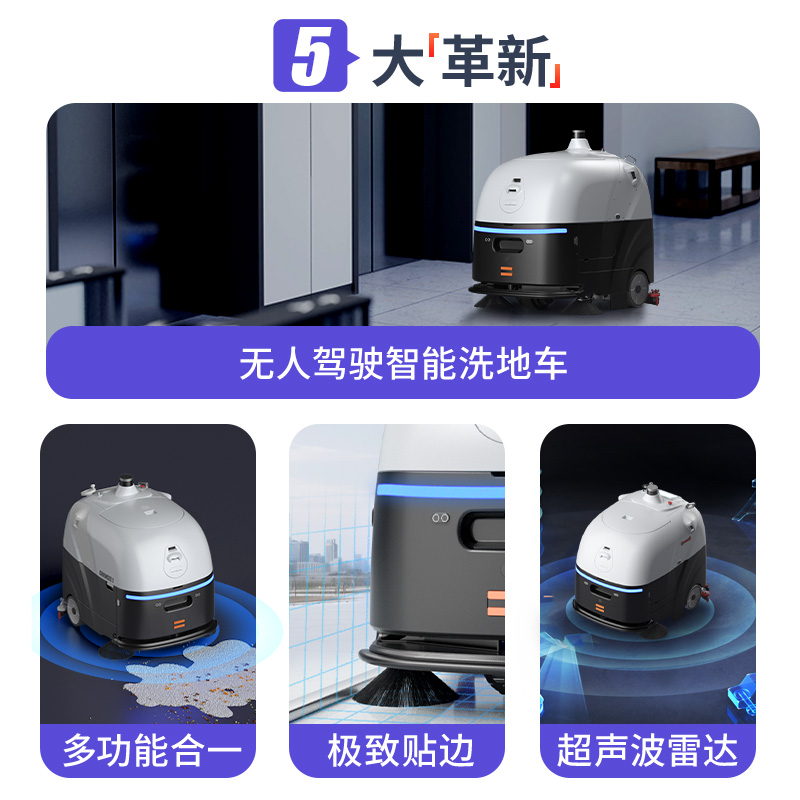 揚子YZ-SC80高端智能洗地機器人,無人駕駛具有掃、洗、推三重功能,四目RGBD識別更精準:能看遠看近看高低輕松應對低矮障礙物,零距離貼邊清潔,邊邊角角都干凈。